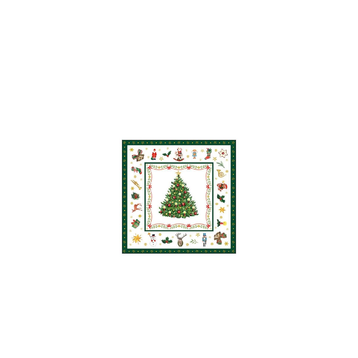 Ihre dreilagige Struktur sorgt nicht nur für Qualität und Festigkeit, sondern auch für ein angenehmes Gefühl bei jeder Berührung. Optisch beeindrucken diese Servietten durch ihr stimmungsvolles Design: Ein kräftiger grüner Rand umrahmt die weiße Basis, auf der sich eine Vielzahl von weihnachtlichen Motiven erstreckt. Das zentrale Highlight dieser kunstvoll gestalteten Serviette ist ein festlich verzierter Weihnachtsbaum, der stolz und majestätisch in der Mitte thront und sofort die Blicke auf sich zieht.